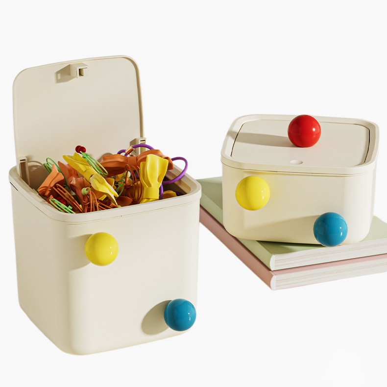 クリームスタイルの卓上ゴミ箱は、省スペース設計でデスク上をすっきり整理。簡単開閉で手軽にゴミ捨て可能。お手入れも簡単な耐久素材使用。