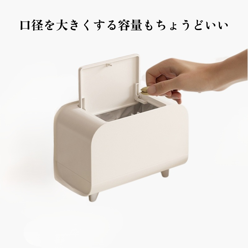 蓋付き卓上ゴミ箱は、省スペース設計でデスク周りに最適。臭い漏れ防止、簡単開閉、清掃も手軽。オフィスや自宅で活躍。